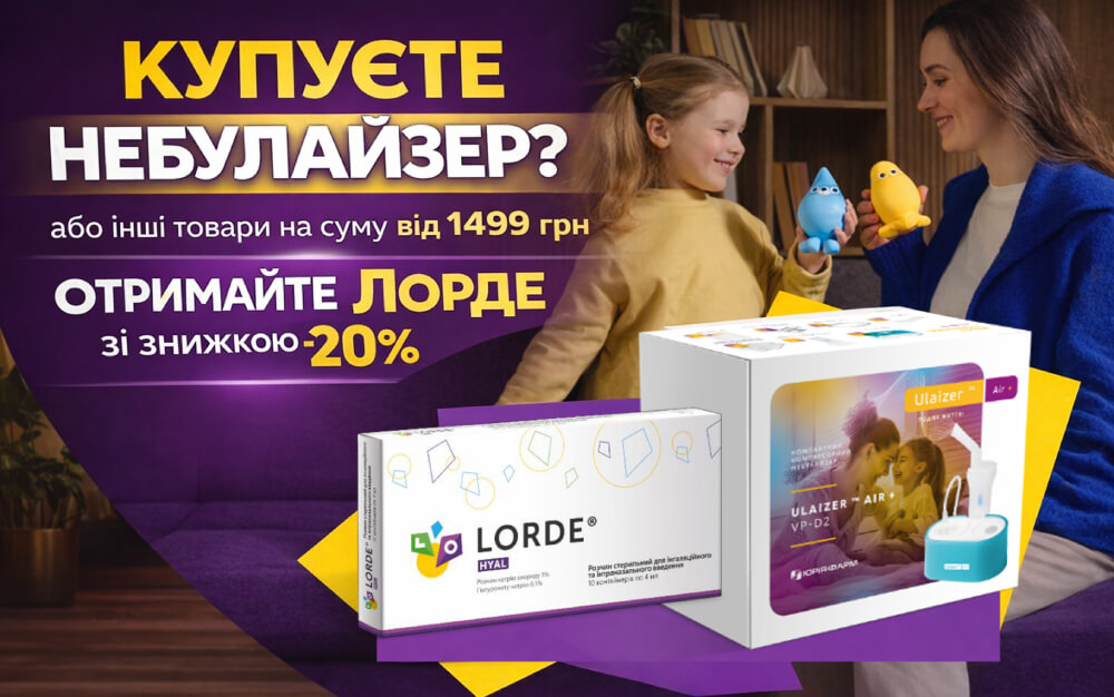 • Приобретите небулайзер Юлайзер® Air+ или сделайте заказ на сайте на сумму от 1499 грн и получите препарат для ингаляций Лорде® со скидкой −20%, применив купон: lorde20